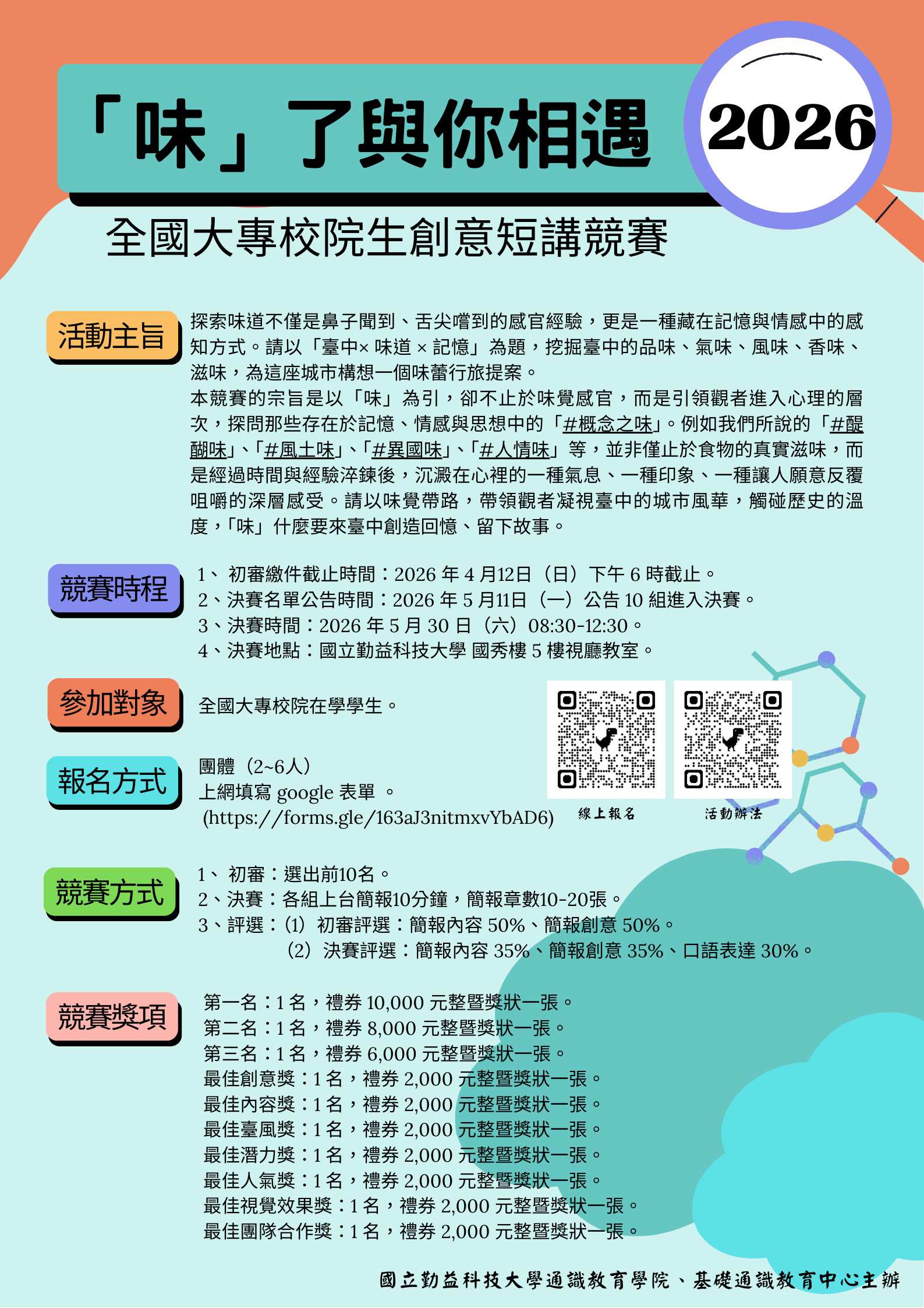 2026全國大專校院生創意短講競賽:「味」了與你相遇